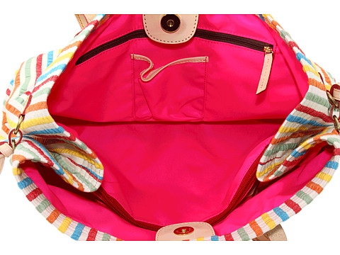 Os doces elegantes e funcionais listraram o tote de Victoria de Dooney e Bourke® é feito da lona com guarnição de couro
